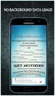 The app "Daily Notifications" mainly targets on top trending News regarding Cricket, Football, Bollywood, Hollywood etc. It also provides you with the earning related updates likes Jobs, Cryptocurrencies and Tech related updates.