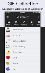 - Anniversary GIF,Birthday GIF,Congratulation GIF,Good Morning GIF,Good Night GIF,Hi-Hello GIF,Kisses GIF,Love GIF,Miss You GIF,Sorry GIF,Thank You GIF,Wedding GIF.