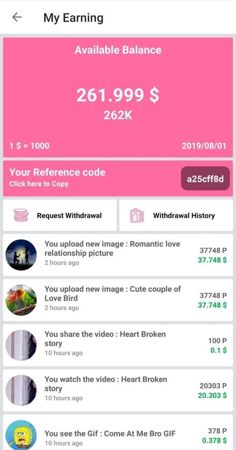 Ya, Anda membacanya, kartu hadiah, uang tunai, dan hadiah gratis. Anda hanya perlu mengunggah beberapa Kutipan, Gambar, Video, Gif di aplikasi ini dan Anda akan diberi hadiah dengan Paypal Cash, kartu hadiah iTunes, Google Play ketika Anda mendapatkan poin yang cukup.