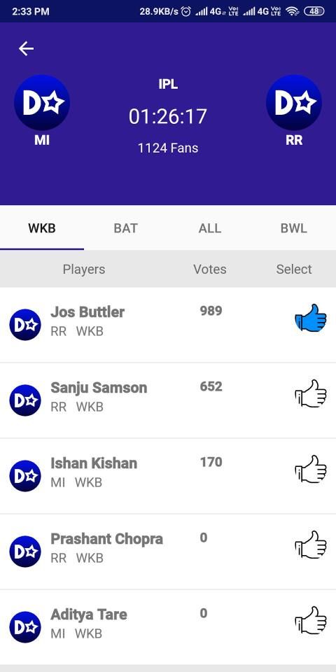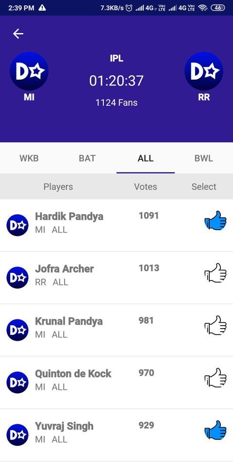 DreamStar is a rating system for Dream11 players. vote for the best players in your team, which you think will smash the records in todays match, and see where that player stands in the millions of other users views!!