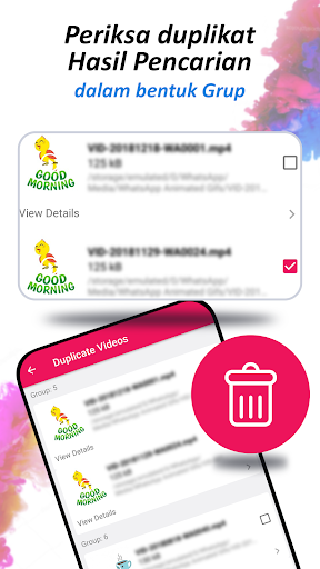 File duplikat memakan banyak ruang penyimpanan ponsel Anda dan Anda harus menghapusnya. Aplikasi ini membantu Anda untuk secara instan memindai telepon Anda untuk mendeteksi file duplikat dan membiarkan Anda memeriksa dan menghapusnya untuk meningkatkan ruang penyimpanan, kecepatan dan kinerja ponsel Anda.
