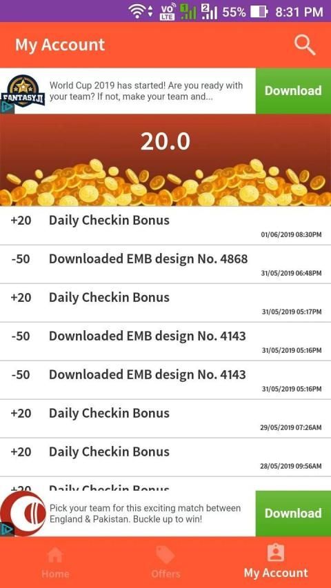 You can collect digital coins by regularly using EMB-Pro Design app, watching rewarded videos and many more activities.