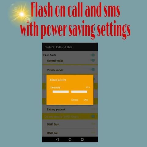 ★ Flash on Call & SMS enable you to set battery threshold for low battery consumption