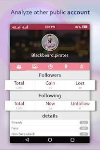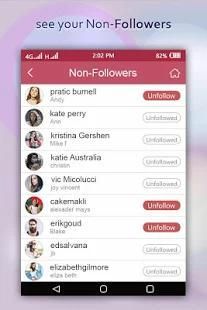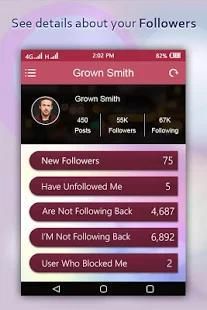 Cari Insta gram follower Anda, Unfollowers, pengikut setia dan banyak lagi di semua-dalam-satu Follower tracker untuk Insta. Dengan Follower tracker untuk aplikasi sosial, Anda dapat dengan mudah melacak pengikut Anda dan kinerja pasca untuk lebih baik akun sosial Anda.