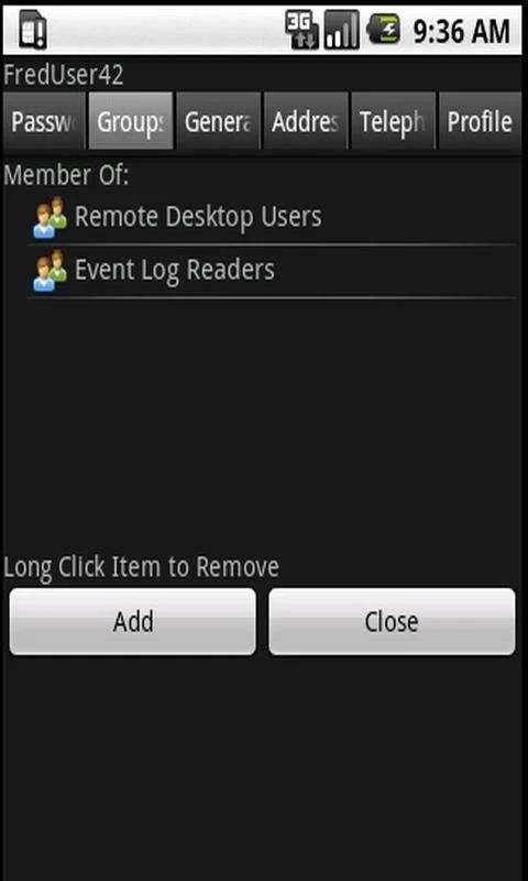 *Free version does not save connection definitions or settings long term(forgetful free version). Full version is availiable here: https://market.android.com/details?id=net.bealsystems.ADUserManager