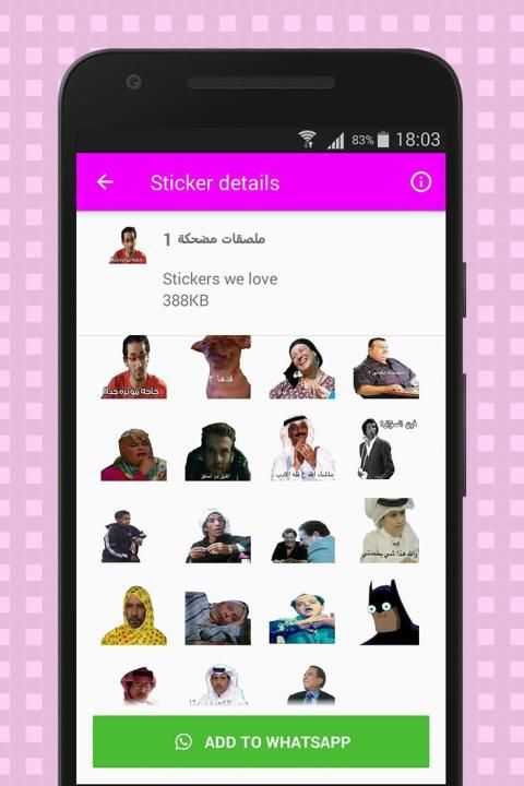 أخيراً التطبيق المنتضر وصل، ملصقات عربية و خليجية مضحكة للواتساب، باقات جديدة و متنوعة لأكثر الملصقات تداولاً . حمل التطبيق الآن و إجعل محادثاتك أكثر مرحاً.يتضمن تطبيقنا على 13 باقة ملصقات، و أكتر من 230 ملصق.