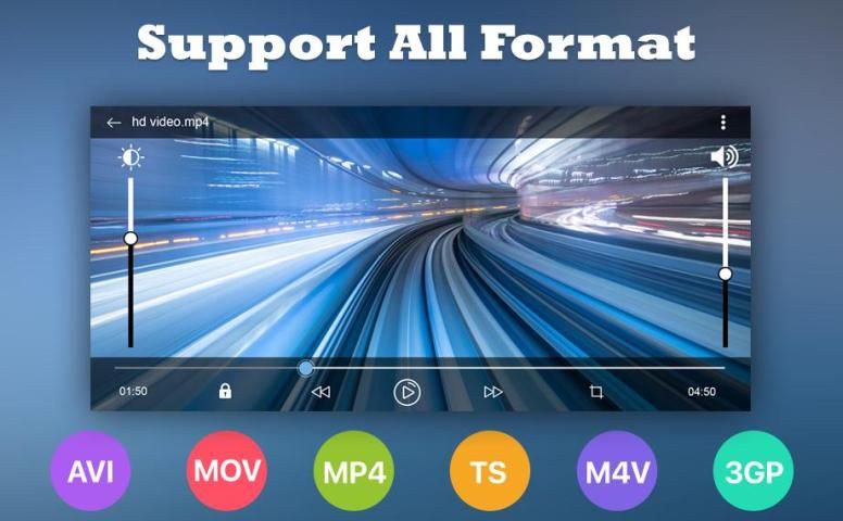 Pemutar video mendukung semua format video termasuk AVI, MP4, WMV, RMVB, MKV, 3GP, M4V, MOV, TS, MPG, FLV dll.