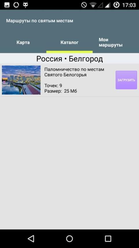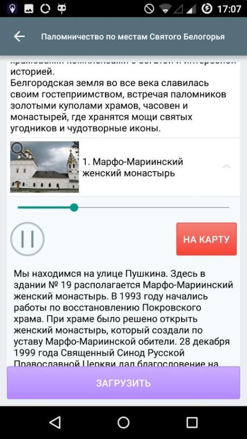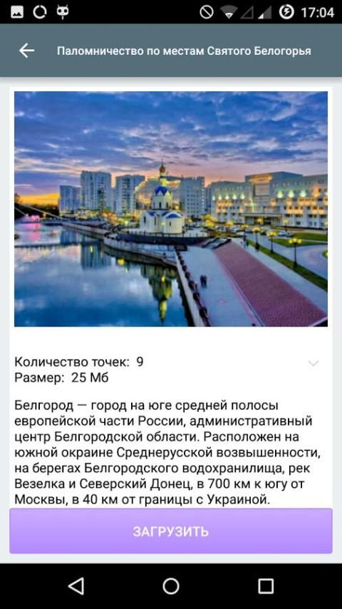 Aplikasi ini dirancang untuk membantu peziarah membaca untuk tempat-tempat suci Ortodoks rute dan melewati mereka.