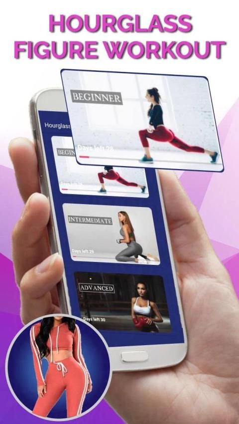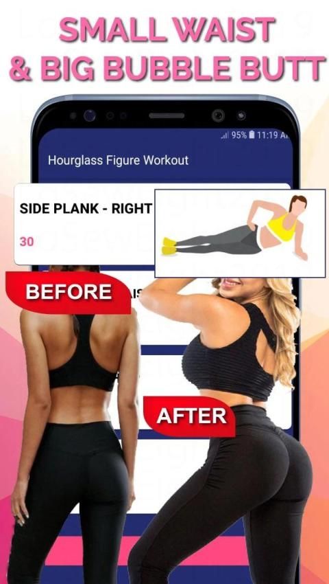 30 Day Sexy Hourglass Figure Workout app - Small Waist Workout and Bubble Bigger Butt Workout at home. Find the best Hourglass body shape workout for women to have a beach body with perfect sexy curves of a small waist training and round bubble butt & wide hips.