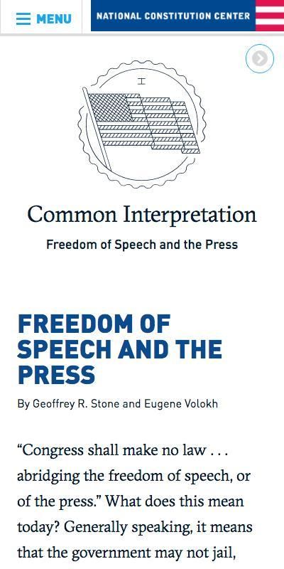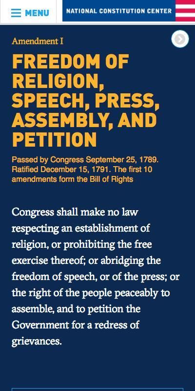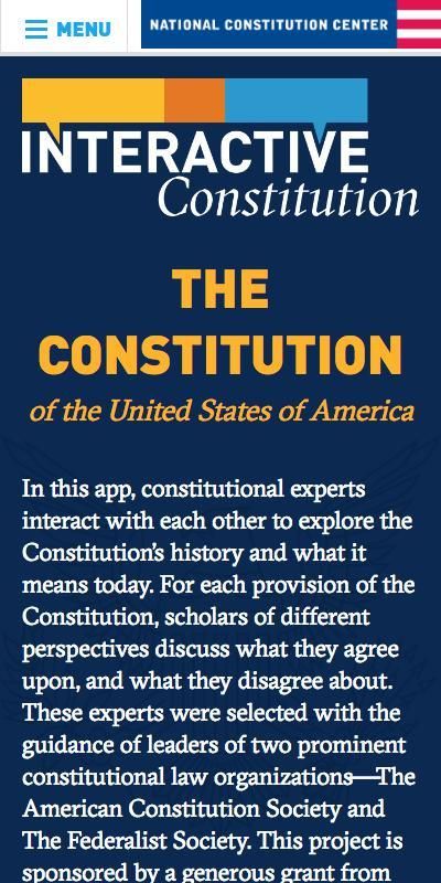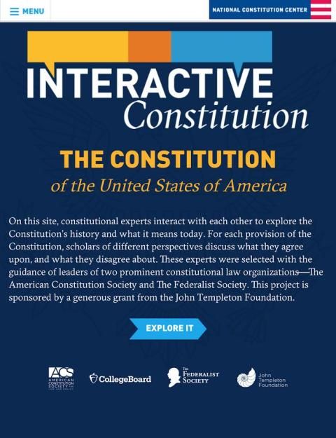 Gratis aplikasi Konstitusi Interaktif menyediakan teks lengkap dari Konstitusi AS dan fitur esai oleh para ulama terkemuka yang rinci area kesepakatan dan ketidaksepakatan di berbagai perspektif filosofis dan hukum. Dibuat oleh Pusat Konstitusi Nasional dalam kemitraan dengan Amerika Konstitusi Masyarakat dan Federalist Society, sumber daya non-partisan ini ditampilkan oleh Dewan Tinggi di kursus sejarah dan pemerintah Advanced Placement nya. Konstitusi Interaktif dimungkinkan oleh hibah dari John Templeton Foundation.