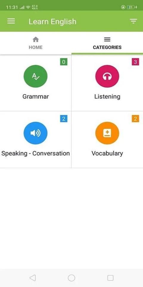 "Belajar Bahasa Inggris Setiap Hari" memiliki 4 Kategori Belajar Bahasa Inggris
