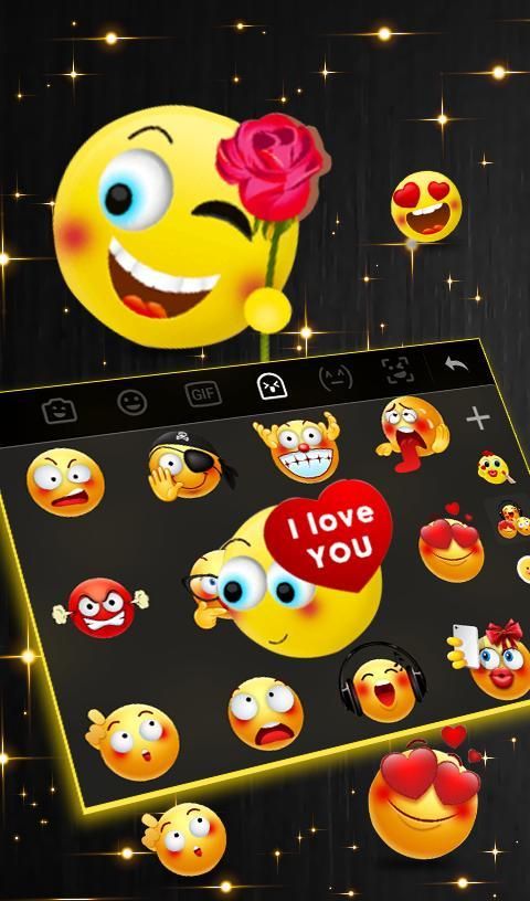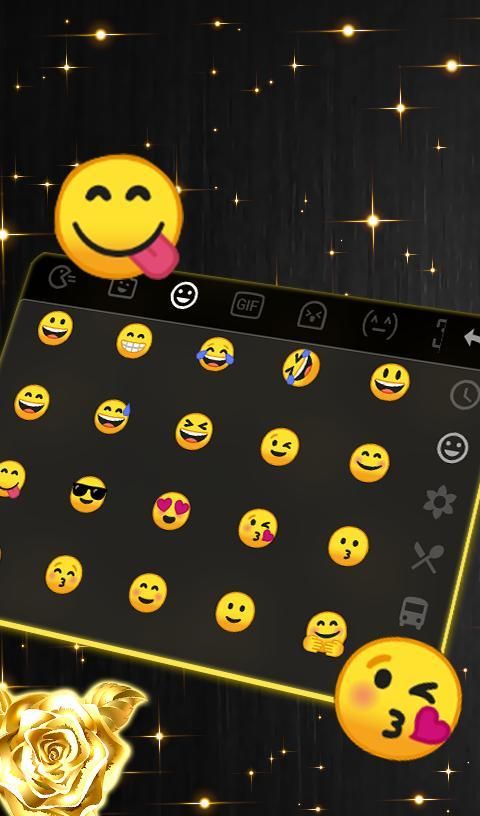 Lustrous Black Golden Rose Keyboard has smart search for emojis, images , gifs and video without swichhing app.