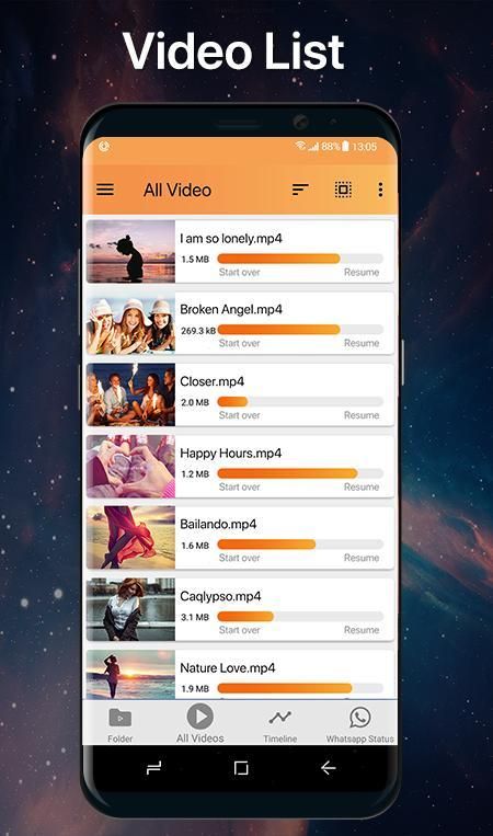 => Anda dapat mengakses semua file video Anda di dalam aplikasi.