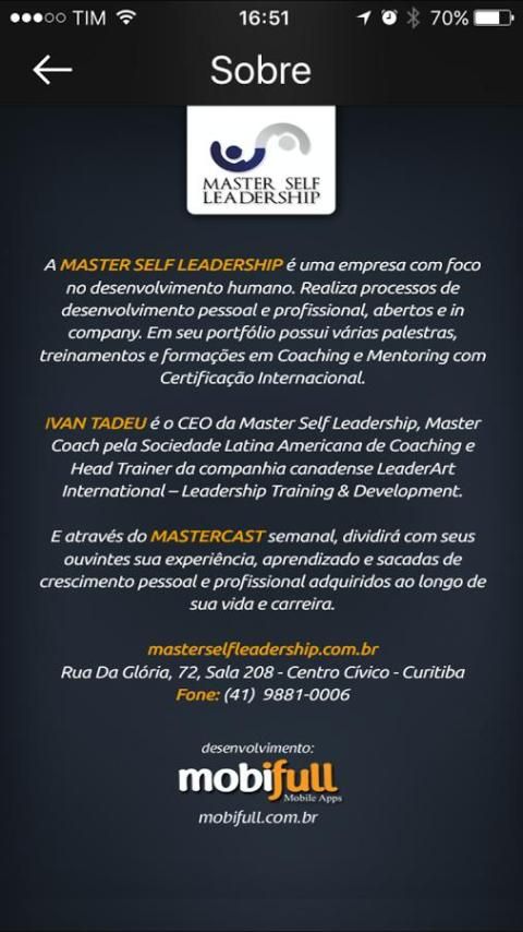 MASTER DIRI KEPEMIMPINAN adalah fokus sekarang pembangunan manusia. Melakukan proses pengembangan pribadi dan profesional, terbuka dan di perusahaan. portofolio memiliki beberapa ceramah, pelatihan dan pelatihan dalam Coaching dan Mentoring dengan Sertifikasi Internasional.