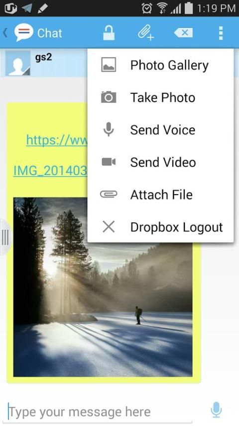 ● Berkas share menggunakan Dropbox: Berbagi foto, suara, video, dan jenis file dengan teman-teman Anda.