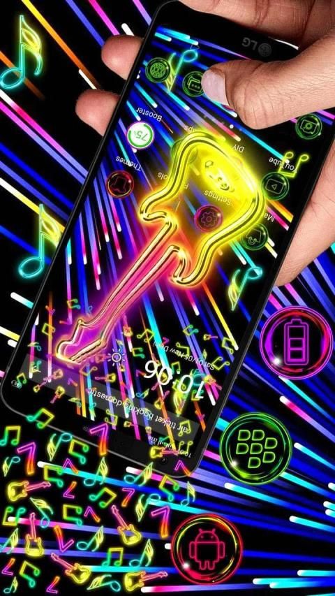 ✔️Remove dullness: - neither you need to buy new phone nor need to waste money for removing dullness. Neon guitar theme removes your screen dullness and changes into new wallpaper and icons very dark and lighting.