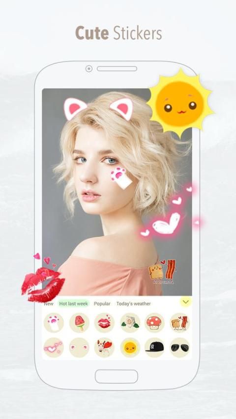 Kamera Selfie memproses perpustakaan stiker paling komprehensif. Anda dapat menemukan stiker lucu untuk narsis dan orang-orang yang indah untuk fotografi Anda. Anda tidak boleh melewatkan itu!