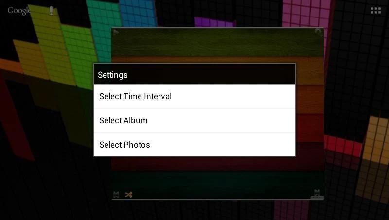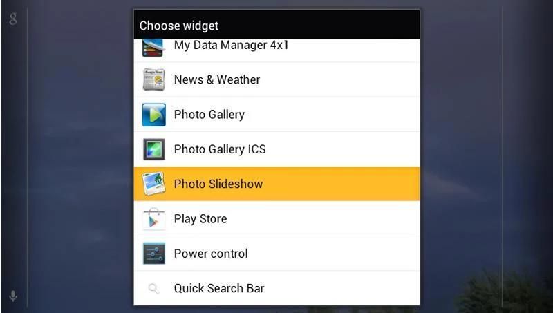 Panjang Klik Desktop> Widget> Photo Slideshow> Tarik ke rumah