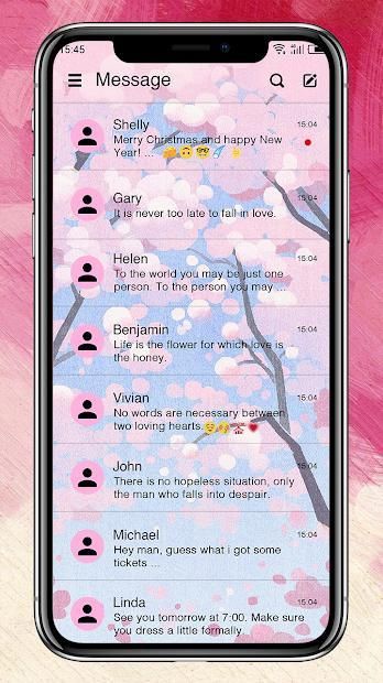 sms app: https://goo.gl/VCJVCI, getting this cool and free personalized theme to make your One Sms app more lovely and colorful. There are more interesting themes, emojis and stickers waiting for you.