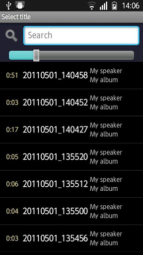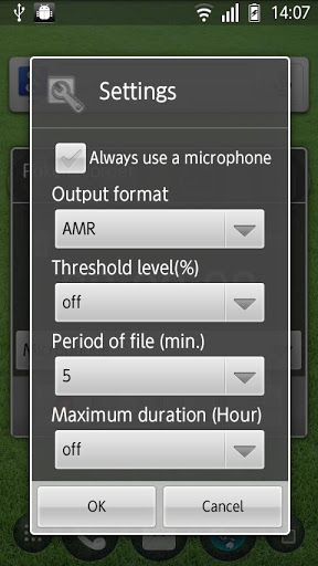 Simple voice recorder FeaturesPhone call Recording Record up to 96 hours.Save the file divided by the specified time.Files are not saved when there is no sound.Attaches to mail,etc.Cut any section, playAuto email sendingApplication exampleRecording of conference etc. for a long timePreservation and automatic Mail Sending of content of telephone call other party number additionAbnormal sound detection and Mail Sending by level specificationinformation Please contact me with mail when there are abnormal operation and a demand, etc.It responds to the repayment when trouble etc. are found. About the telephone call recordingThe telephone call recording cannot be likely to be done due to a juridical problem in mounting at Android OS or the cellular phone manufacturer level. Moreover, there is a possibility that the function of a juridical problem in the United States is limited when an other party side alone cannot be recorded. When it is not possible to record well, it is likely to operate by the following setting changes. 1When it is not possible to reproduce even if it recordsPlease check quot;Recording source ID correctionquot; by quot;Options menuquot; quot;Settingquot;. 2Abovementioned 1 When not operatingWhen talking over the telephone, it records with the mike when the check is put in quot;The mike input is always usedquot; by quot;Options menuquot; quot;Settingquot;. If it is possible to report with mail when it doesn39;t go well, I will repay it.