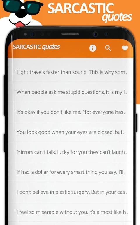 Are you looking for some free apps? 20,000+ users downloaded Best Sarcastic Quotes latest version on 9Apps for free every week! A lot of functions and features are contained in this app. This hot app was released on 2019-01-12. I will tell you how to use this app in the following page.