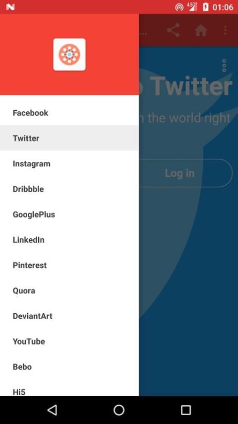 Anda dapat mengakses banyak jaringan sosial melalui aplikasi ini, beberapa tercantum di bawah ini: