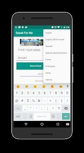 Speak For Me - Text to Speech speaks the words typed onto the text field. Learn how to pronounce words in another language or accent, or If you are mute or have suffered an injury that has impaired your voice, let your voice be heard through Speak For Me - Text to Speech. Speak For Me uses the Text To Speech Engine your phone already has installed, therefore the app cannot change the gender of the voice.