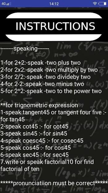 Kalkulator ini sangat berguna untuk perhitungan, pengguna dapat melakukan perhitungan cepat hanya dengan berbicara. Mudah digunakan karena antarmuka yang sederhana, Ini berisi panel bergulir untuk lebih banyak fungsi. Setiap orang termasuk anak-anak dapat dengan mudah menggunakan kalkulator ini. Ini sangat berguna dalam kehidupan sehari-hari. Pengguna dapat melakukan operasi nilai besar dan masalah rumit.