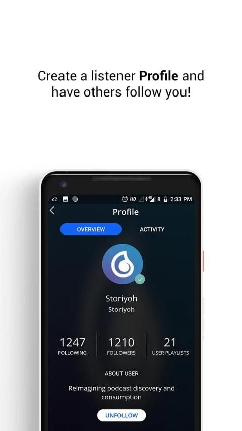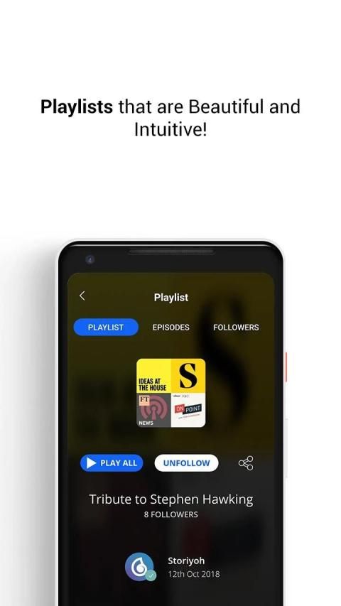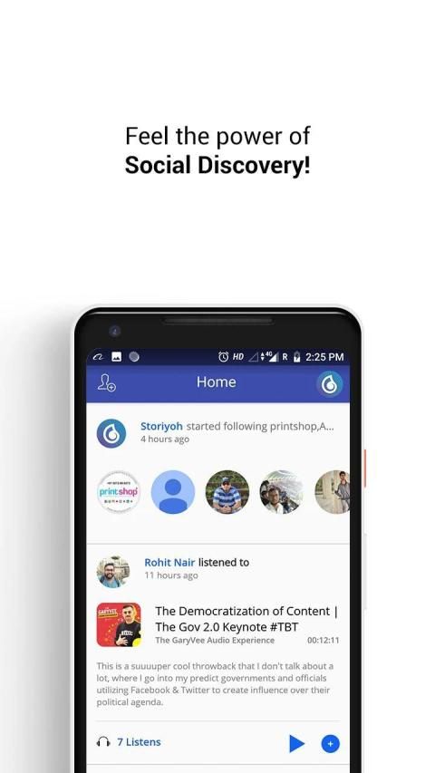 Storiyoh is the only podcast app for Android where you can discover new podcasts that your friends are listening to. Or chat with them on episodes you have both listened to.