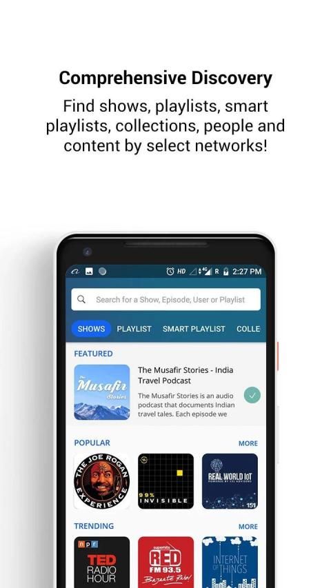 It is a social podcast player where podcast lovers and podcast fans meet and engage.