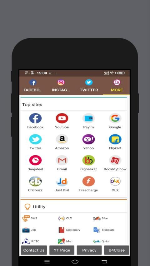 This Is the coolest social browser present on play store in category or all in one social media app or social apps.....