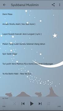 Sholawat Syubbanul Muslimin merupakan kumpulan ratusan lantunan merdu dan syahdu lagu - lagu religi Islami, qasidah, nasyid, hadroh dan Sholawat Nabi lengkap, terbaik dan terbaru oleh Syubbanul Muslimin. Aplikasi Sholawat Syubbanul Muslimin berisi kumpulan sholawat Syubbanul Muslimin yang terkenal di kalangan santri di pulau jawa. Syubbanul Muslimin adalah sebuah Majelis yang berpusat di Pondok Pesantren Nurul Qodim Kalikajar Paiton Probolinggo dan diasuh oleh KH. Hafidzul Hakim Noer.