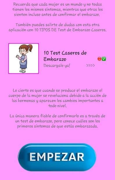 Encontrarás un cuestionario con 12 preguntas que corresponden a los principales síntomas de embarazo, con los que se obtiene un porcentaje aproximado que puede servir como orientación para saber si estás embarazada.