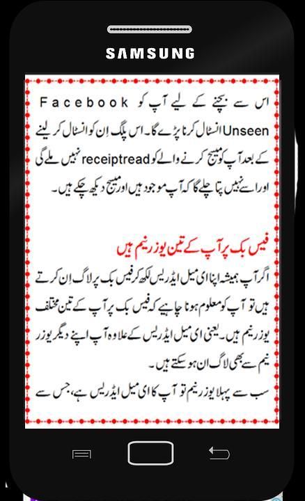 Ini Trik dan panduan untuk FaceBook adalah sebuah aplikasi yang menyediakan banyak trik dan tips dalam bahasa Urdu tentang jaringan media sosial facebook.