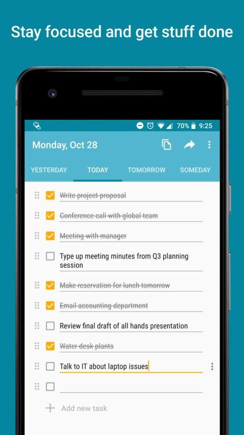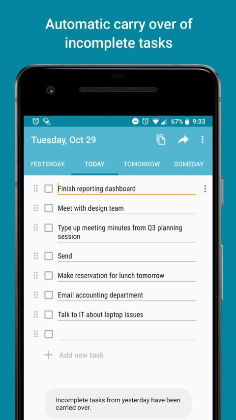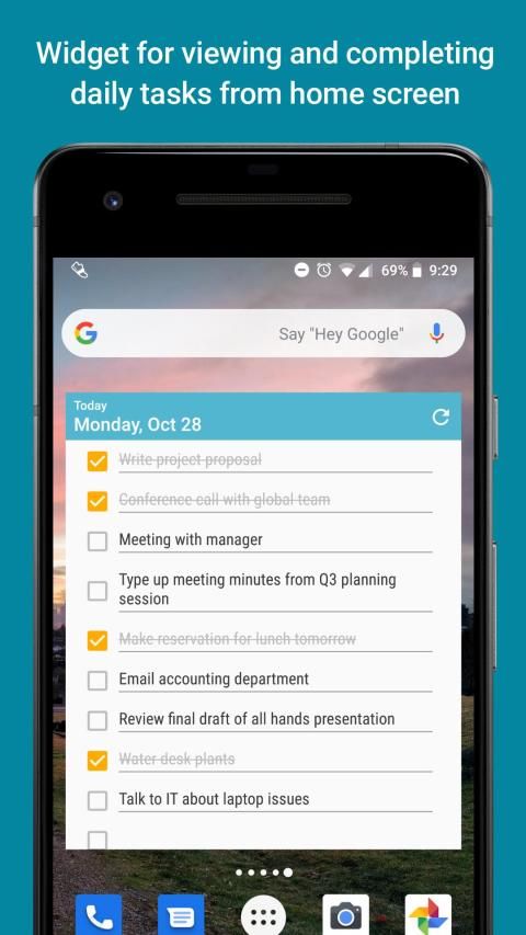 • dengan mudah menandai tugas pada daftar tugas harian Anda sebagai lengkap dengan ketukan kotak centang