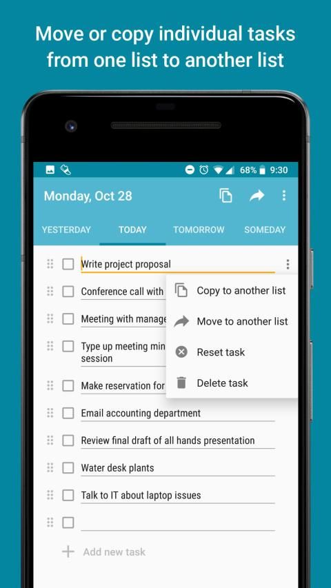 • menyalin tugas dari satu daftar tugas ke daftar tugas lain