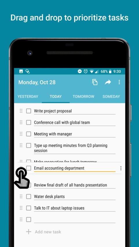 • every daily todo list is a drag drop list for easy organization and prioritization