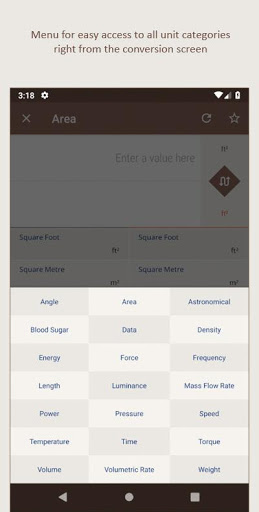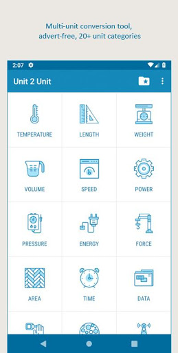 An easy-to-use Android App to convert units such as Temperature, Length, Weight, Volume, Speed, Power, Pressure, Energy, Force, Area, Time and many others.