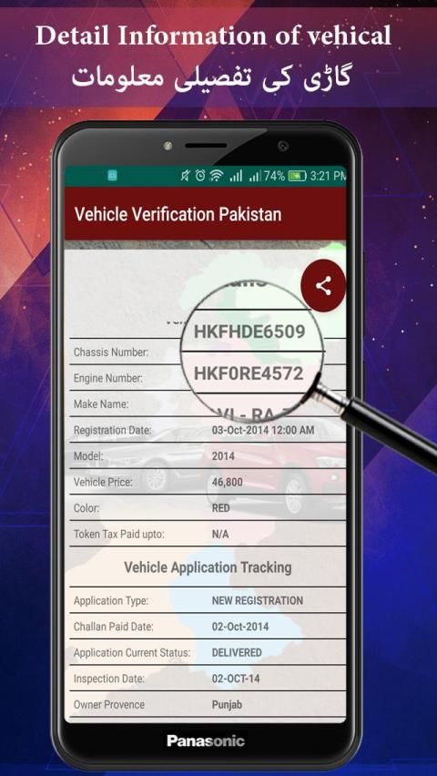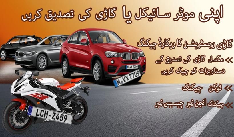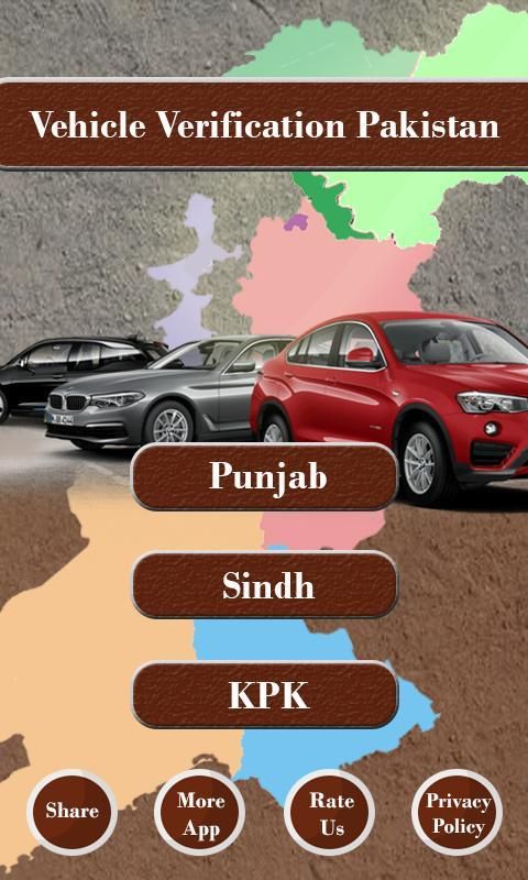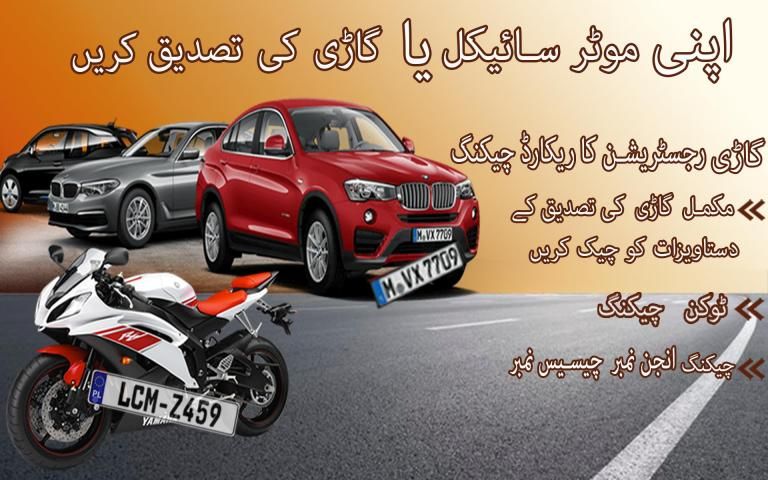 Punjab, Sindh and KPK. Download car registration Verification app and check information of your Car. Car registration verification app is free to download and easy to use for everyone.