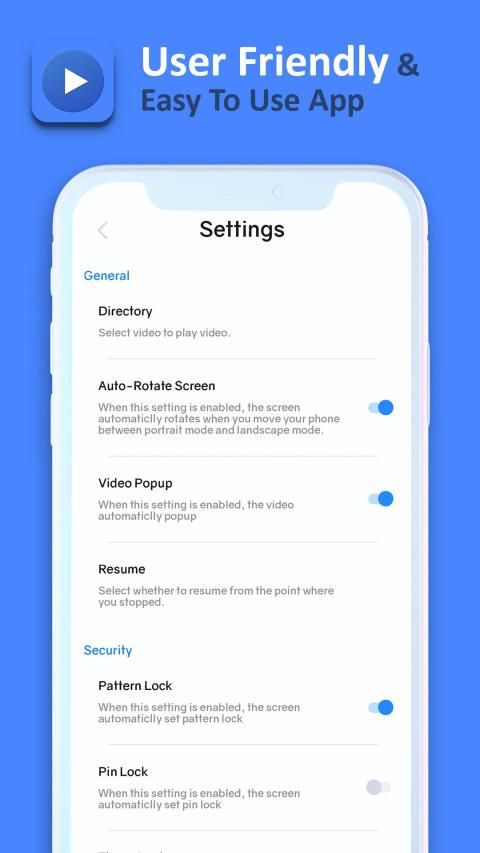 : privacy is more important for video player. Get different types of lock ideas. Pattern lock, pin lock, etc.