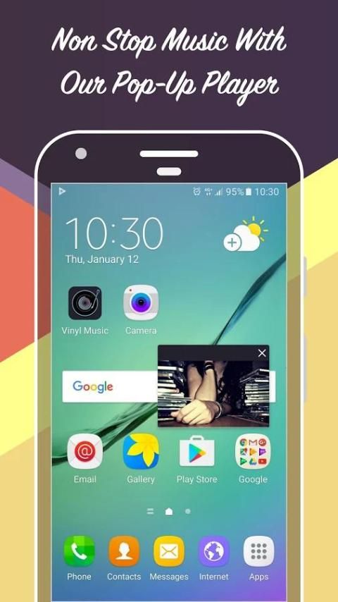 mengambang popup pemain yang akan membuat musik Anda bermain di layar saat Anda menggunakan aplikasi lain. Anda dapat memindahkan pemain mengambang di sekitar layar Anda untuk pengalaman multitasking yang sempurna, yang memungkinkan klip musik Anda untuk