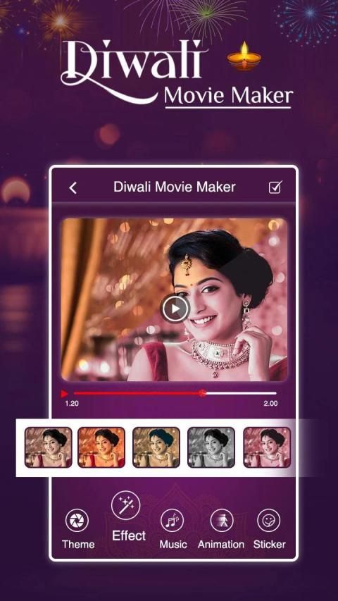 Photo video movie make is easy to use and highly powerful and has many options to customize and make it personal video. Diwali Photo Video Movie maker with music is