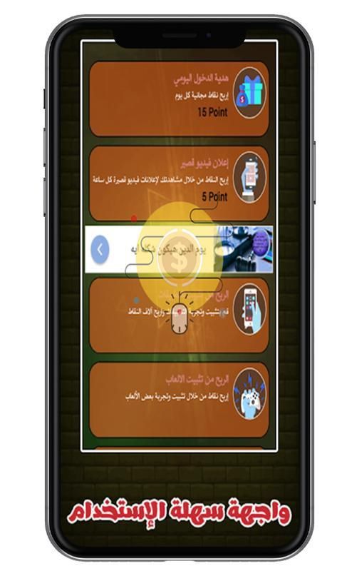 Aplikasi keuntungan Anda adalah aplikasi Arab keuntungan baru di mana Anda dapat memasukkan aplikasi setiap hari dan memenangkan 30 poin secara gratis dan juga memungkinkan Anda untuk menginstal aplikasi melalui penawaran untuk mendapatkan banyak poin dan juga menonton video setiap hari, Anda juga dapat mengumpulkan lebih dari 1000 poin per hari dengan menyelesaikan penawaran dan unduhan dan juga Undang teman untuk memenangkan 50 poin.