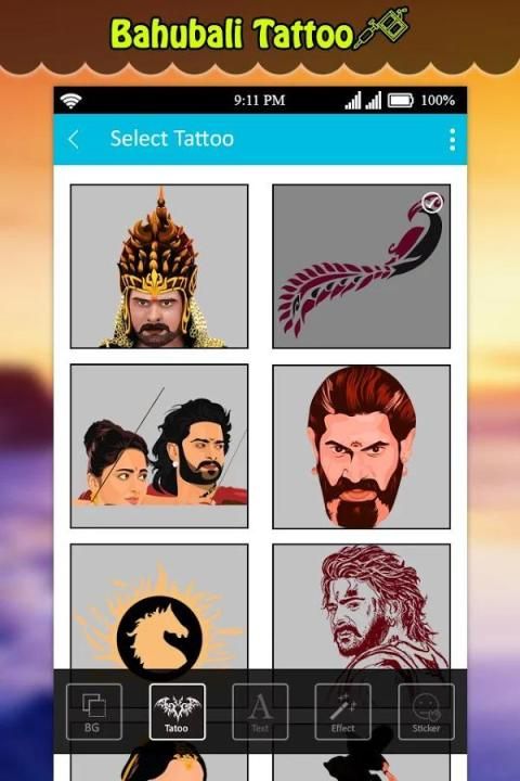 Bahubali Tattoo aplikasi untuk mendedikasikan film populer ini.