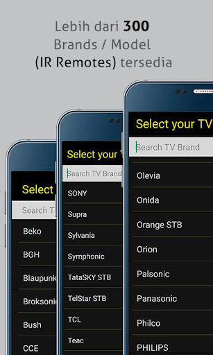 Jika merek Anda tidak terdaftar atau aplikasi remote control TV tidak berfungsi dengan televisi Anda, silakan kirim email kepada kami dengan merek TV Anda dan model jarak jauh. Kami akan berupaya membuat aplikasi ini kompatibel dengan merek TV Anda.