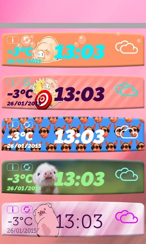 Apakah Anda mencari yang baik "widget AccuWeather" dan waktu dan tanggal widget yang akan terlihat sangat keren di layar awal perangkat Android Anda? Anda telah akhirnya menemukan itu! Anak Babi Cuaca Jam Aplikasi merupakan sebuah aplikasi cuaca yang sangat berguna dan widget jam digital yang dibuat dengan berbeda "widget babi" gaya untuk semua penggemar babi dan pecinta. Widget cuaca babi dan jam ini membawa akurat dan terkini perkiraan kondisi di luar ruangan Anda saat ini setiap kali Anda memeriksa. Dengan hanya beberapa PDAM, ramalan cuaca dunia terbaru dan widget waktu memberikan informasi seperti curah hujan, kelembaban, tekanan, dan banyak lagi. Ketika Anda men-download, awalnya Anda akan mendapatkan lima gratis gaya widget babi sedangkan sisanya dari mereka kita akan membuka secara eksklusif untuk Anda.