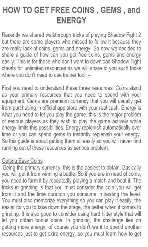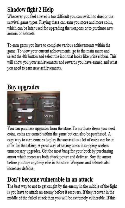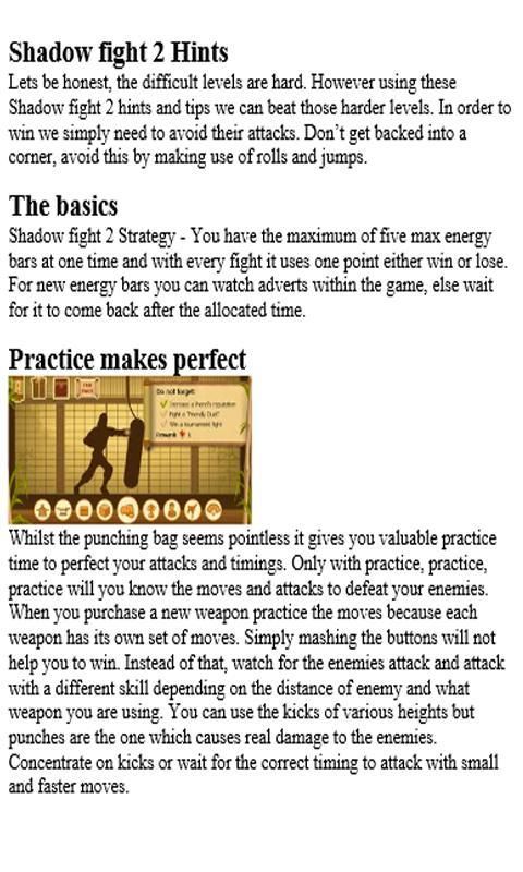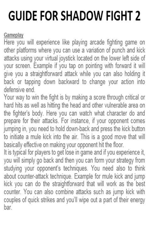This App is guide , tips , trick and informations about Shadow Fight 2.