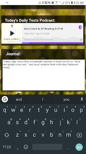 - Kemampuan jurnal untuk menangkap pikiran dan wawasan tentang teks-teks harian setiap hari - Fungsi pencarian berdasarkan Word atau Ayat Alkitab - Teks untuk 2016-2021