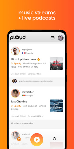 Inilah Radio masa kini! Mulai Stream-mu, bagikan Musik yang kamu dengarkan dan berbicara ke pendengarmu. Playd menggabungkan yang terbaik dari Spotify, Twitch & Instagram. Jaringan musik sosial, tempat kamu dapat menemukan Live Streams internasional terbaik, kamu bertukar Live dengan anggota lain, dan membuat konten audio yang unik. Baik Musik Stream, Live Podcast atau acara Komunitas – Kamu yang akan menentukan.