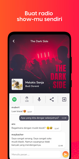 • Bicarakan tentang musik yang sedang diputar dan atur acara komunitas.